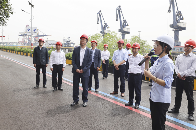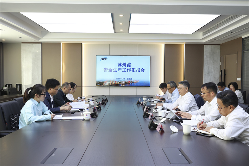 4月18日,省港口集团总经理、党委副书记关永健率队检查苏州港集团“五一”节前安全生产工作。苏州港集团党委书记、董事长吴红、总经理毛雪强、副总经理詹新望等陪同检查。