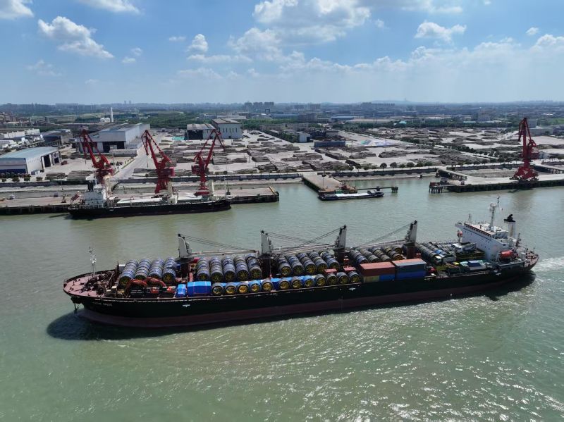 8月18日05:00,“富屯溪”轮在永恒码头1#泊位完成12818吨石油软管等设备装船任务驶向巴拿马巴尔博亚港。作为永恒码头首次承接的中南美班轮航线的货轮装船任务,此次“富屯溪”轮成功首航,标志着永恒码头开启设备类货种作业国际航线的新篇章,更是集团公司积极开辟中南美市场“第二赛道”的重要里程碑。