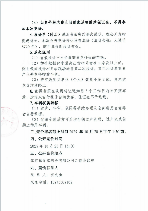 江苏苏州港集团有限公司公务车(别克商务车) 公开竞价转让公告